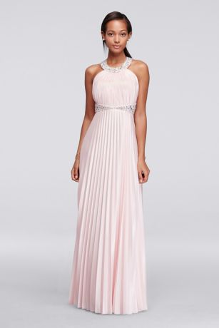 Beaded Strappy Back Halter Prom Dress With Pleats David S Bridal