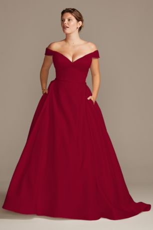 Off Shoulder Satin Gown Tall Plus Wedding Dress David S Bridal