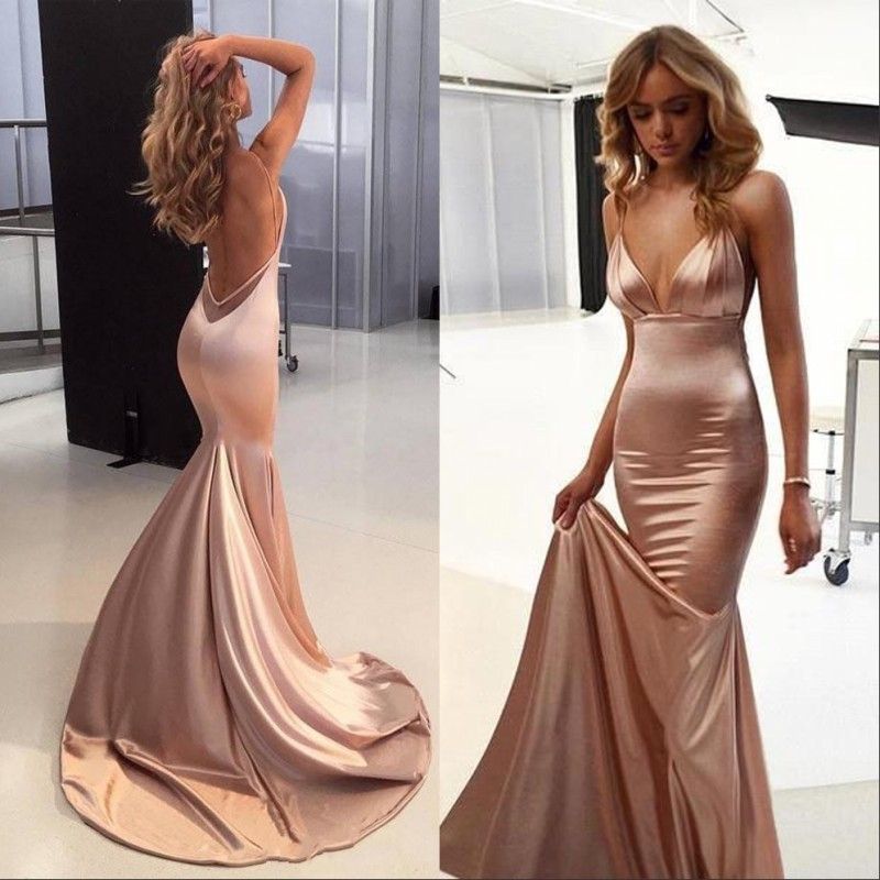 Elegant Sexy Rose Gold Prom Party Dresses 2019 Spaghetti Backless Sweep Train Backless Simple Mermaid Occasion Red Carpet Evening Gowns From Dressave 91 39 Dhgate Com